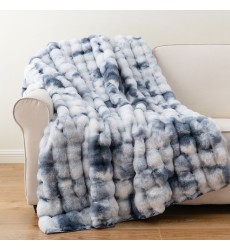 Soft Stylish Luxury Warm Embossed Tie Dye Ruched Bubbly Rabbit Faux Fur Minky Throw Blankets for Winter