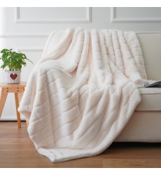 Super Soft Fuzzy Faux Fur Elegant Rectangular Embossed Throw Blanket