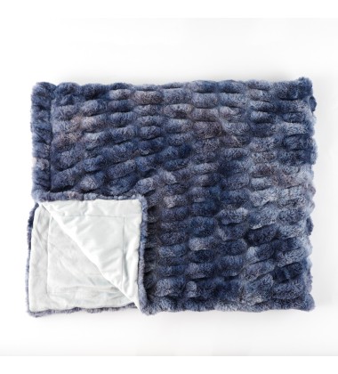 Nordic Style Fuzzy Cozy Warm Tie Dye Navy Blue Faux Fur Soft Wave Ruched Faux Fur Throw Blanket