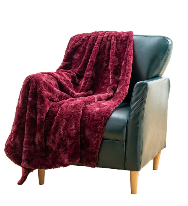 Faux Fur Reversible Maroon Red Tie-dye Brushed Embossed Sherpa Throw Blanket for Sofa Couch and Bed